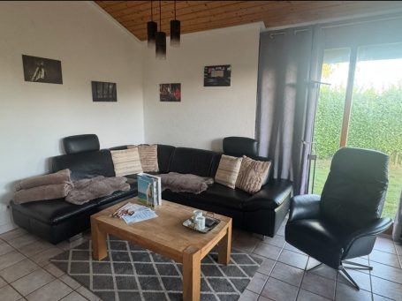 Schöner großer Garten läd zum verweilen ein. Für die Kinder steht ein Spielhaus zur Verfügung und die Hunde können sich frei im Garten bewegen.