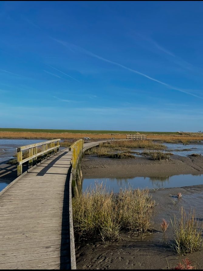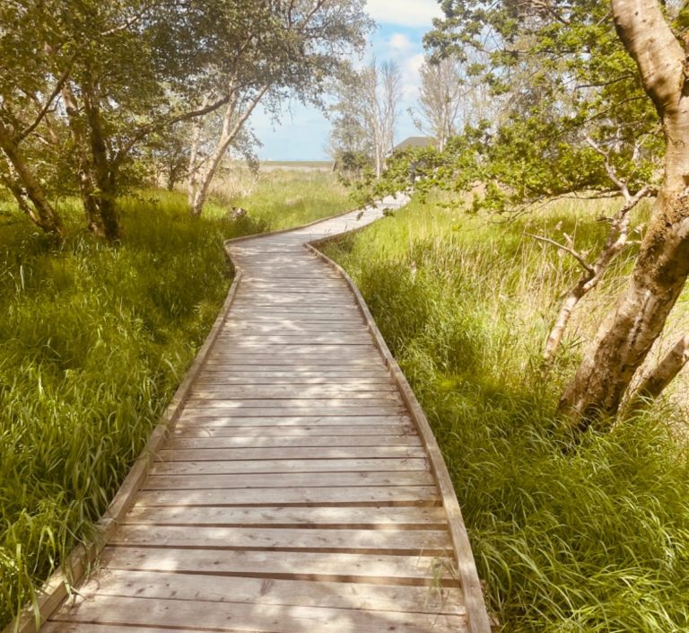 Der Langwarder Groden liegt inmitten des UNESCO-Weltnaturerbes Wattenmeer und ermöglicht den Wanderern eine abwechslungsreiche Entdeckungstour. Ein Bohlenweg führt direkt hinein in 70 Hektar Salzwiesenentwicklungsfläche und ermöglicht so faszinierende Einblicke in die Tier- und Pflanzenwelt des Wattenmeeres.
